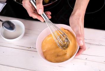 V miske si zmiešame vajíčka a rastlinné mlieko.