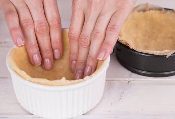 Naplníme ním silikónové formičky. Cesto by malo byť hrubé približne 0,5 cm. Napicháme ho na spodku vidličkou a pečieme v rúre 10 minút.